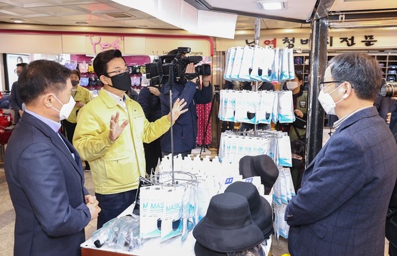 허태정 대전시장, 코로나19 확진자 다녀간 업소 찾아 소상공인 격려