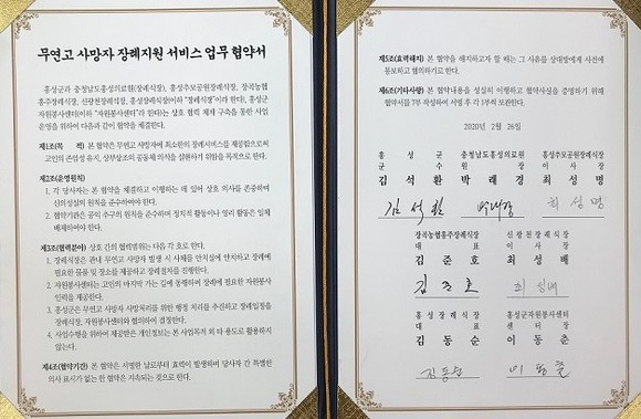 홍성군, 무연고사망자 공영장례 업무협약 체결