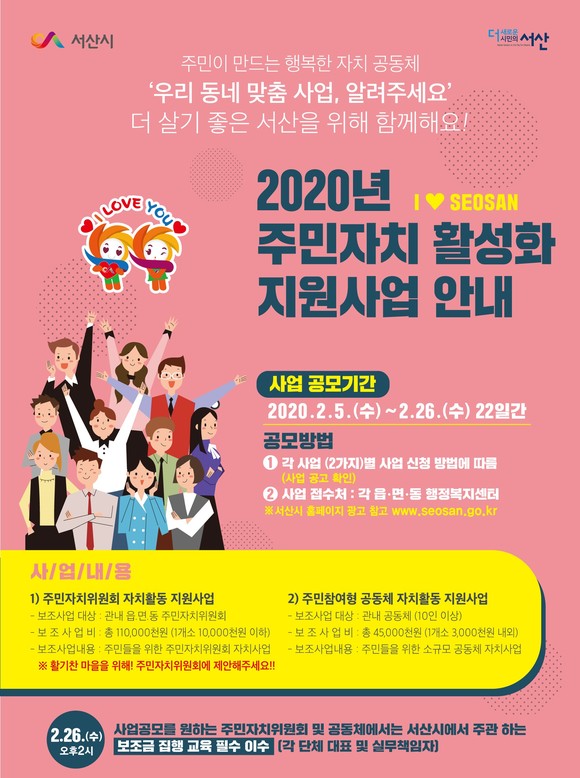 서산시 '2020년 주민자치 활성화 지원 공모사업' 신청
