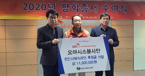 SKC하이테크앤마케팅 오아시스봉사단, 성거읍 저소득가정에 장학금 전달