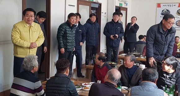 충청향우회 중앙회 초사2통 방문 '신종 코로나 지원금' 전달