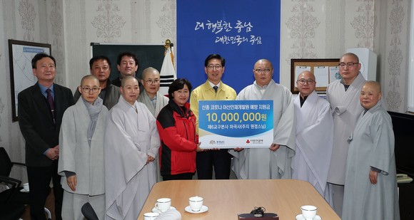 충남도 마곡사 '신종 코로나 지원금' 1000만원 전달