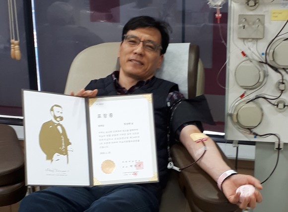 해양경찰청, 정상태 경감 헌혈 100회 명예장 받아