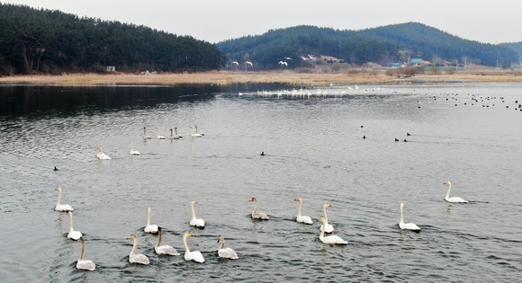 [포토] 태안 수룡저수지에서 우아한 자태 뽑내는 고니들