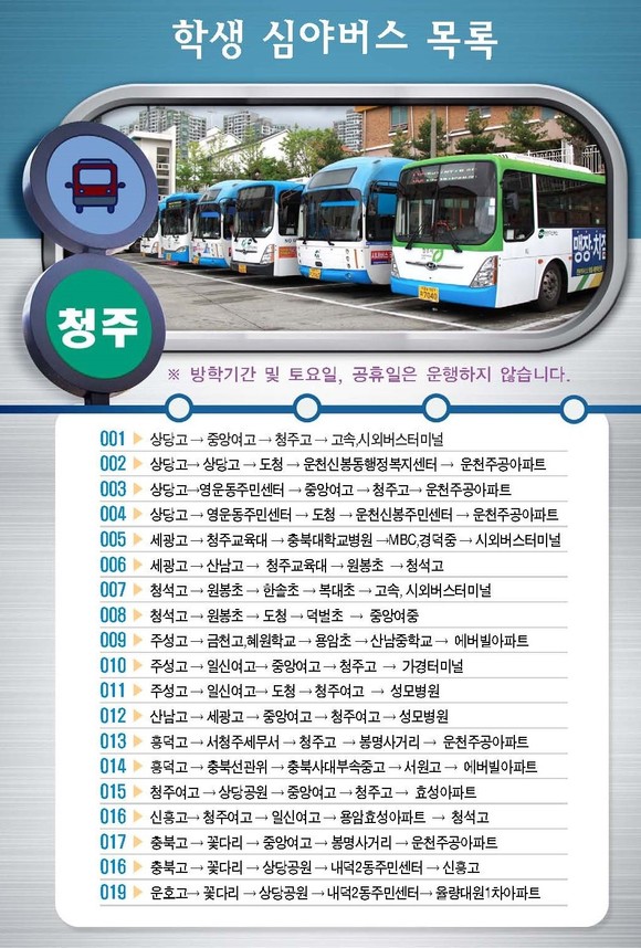 청주시 학생심야버스가 학생들의 늦은 귀가 책임진다