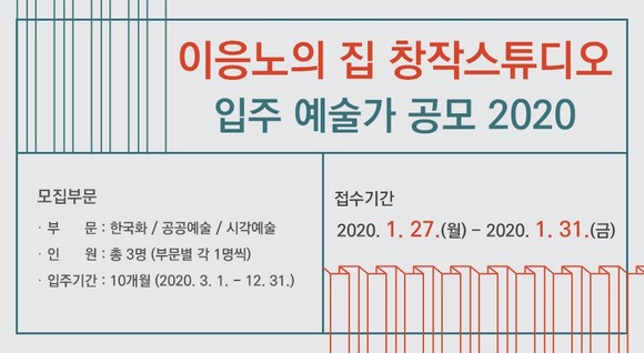 홍성군 이응노의 집 창작스튜디오, 4기 입주 예술가 모집