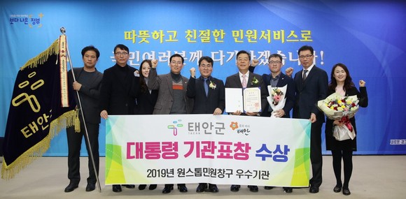 태안군, 군민소통행정 원스톱민원창구 설치 우수기관 대통령 표창 수상