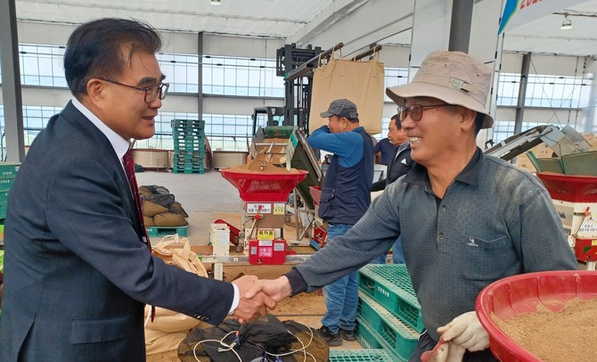 김기웅 서천군수, 영농현장 점검…"밥맛 좋은 쌀, 육묘부터 시작됩니다"