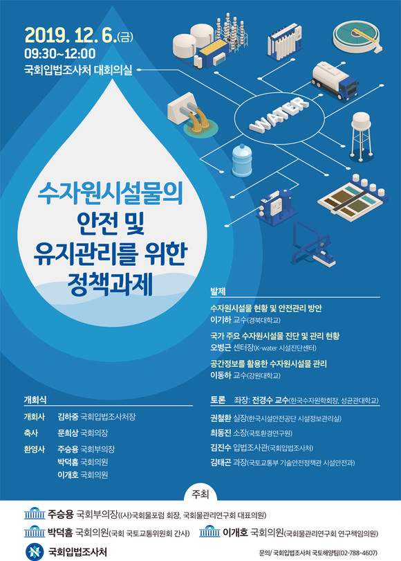 국회입법조사처 '수자원시설물의 안전 및 유지관리를 위한 정책과제' 세미나 공동개최
