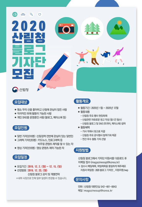 산림청, 2020년 블로그 기자단 모집