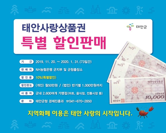 태안사랑상품권, 발행 18년 만에 첫 특별 할인 판매