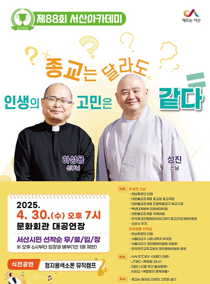 서산시 성진 스님·하성용 신부 초청 '서산아카데미' 개최