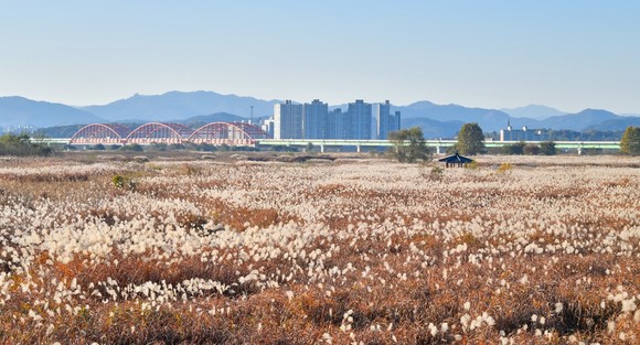 부여군, 백마강변에 흐드러진 물억새 '장관'