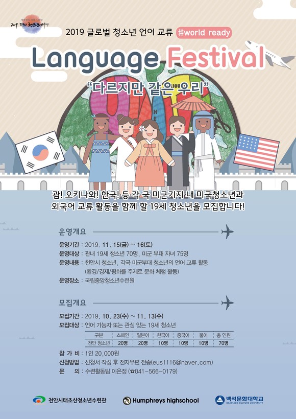 천안시, 청소년 언어교류 랭귀지 페스티벌 참가자 모집