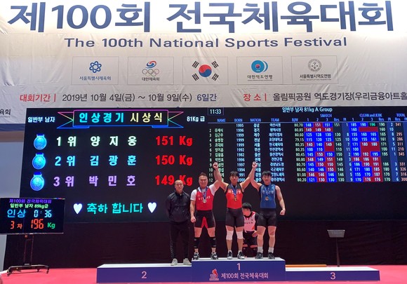 아산시청 역도팀, 제100회 전국체육대회 금 1, 은 2, 획득