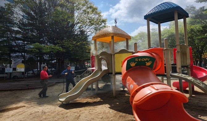 청주시, 봄철 맞아 놀이터 215곳 모래‧놀이시설 고압 세척 완료