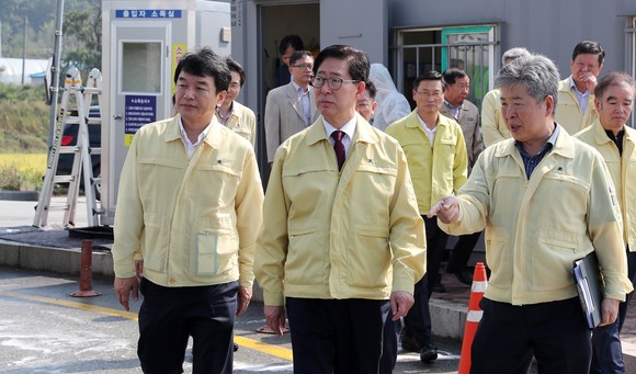 양승조 지사, 천안 거점소독시설 찾아 관계자 격려