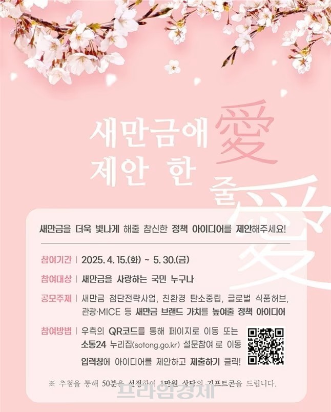 새만금개발청 '새만금애(愛) 한 줄 제안' 공모전 개최