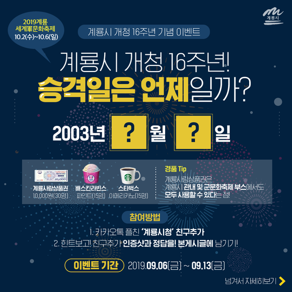 계룡시, 개청 16주년 기념 SNS 이벤트