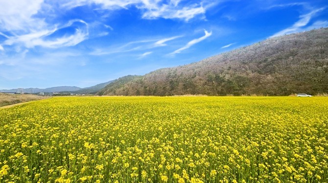 "봄빛 물든 웅천천" 유채꽃과 청보리, 그리고 추억을 담는 포토로드