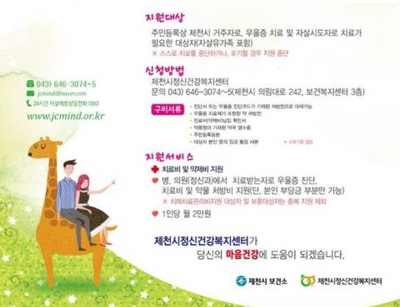 제천시정신건강복지센터 "치료비부터 상담까지" 프로그램 지원