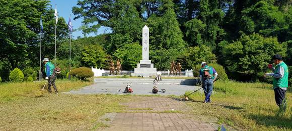 아산시 신창면, 경찰충혼탑 및 남방제 제초작업 실시