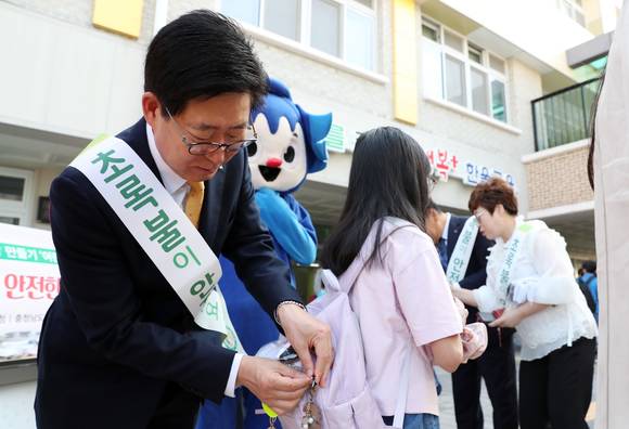 양승조 충남지사, 어린이 교통안전용품 '옐로카드' 나눔 캠페인