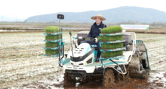 [포토] 보령지역 첫 모내기로 풍년 영농 스타트