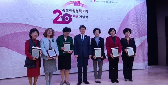 충북도의회 이숙애 교육위원장, 성평등 실현 공헌 공로패 수상