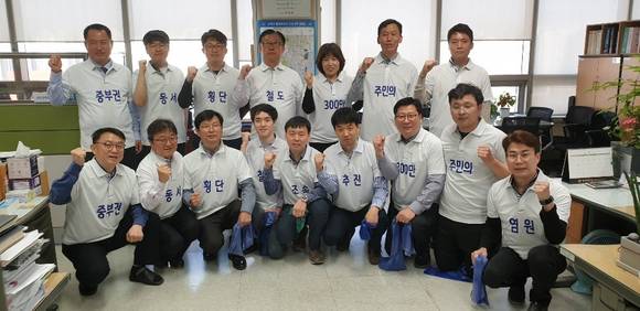 천안시 교통정책과, 중부권동서횡단철도 단체복 입고 근무