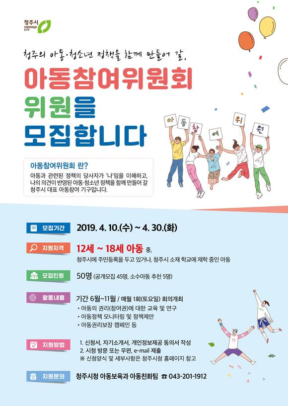 청주시 '제1기 청주시 아동참여위원회' 모집