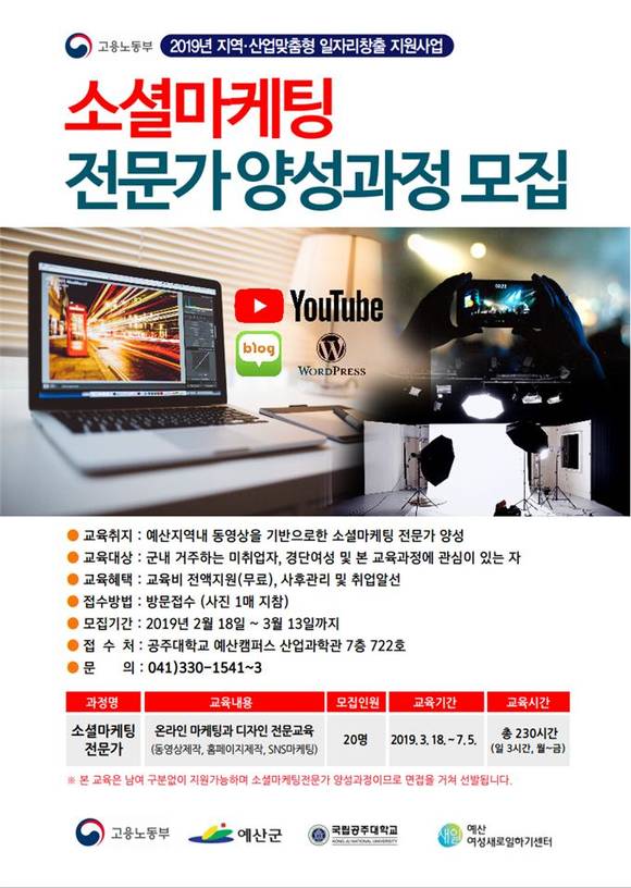 예산군, 2019 고용노동부 지역·산업 맞춤형 일자리창출지원사업 공모 선정