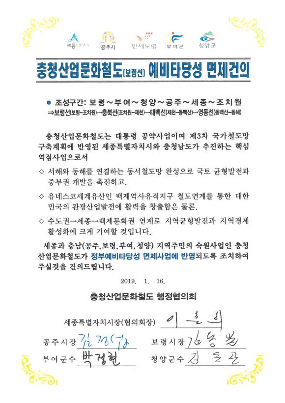 부여군, 충청산업문화철도 5개 시·군 염원 간절