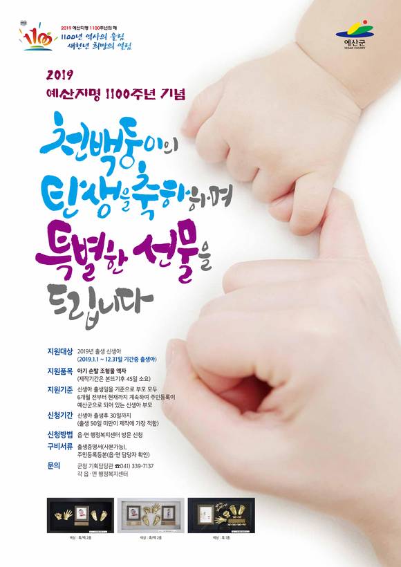예산군 '2019 탄생 천백둥이 축하 지원사업' 실시