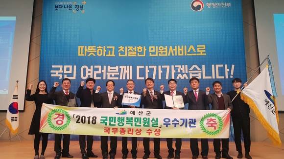 예산군, 2018 국민행복민원실 평가 우수 기관 선정