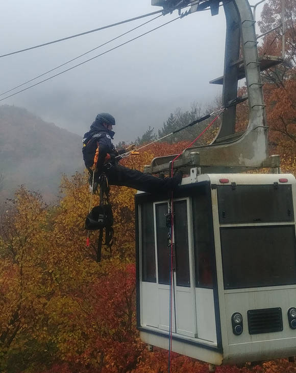 충남소방 케이블카 사고대비 '맹훈련'