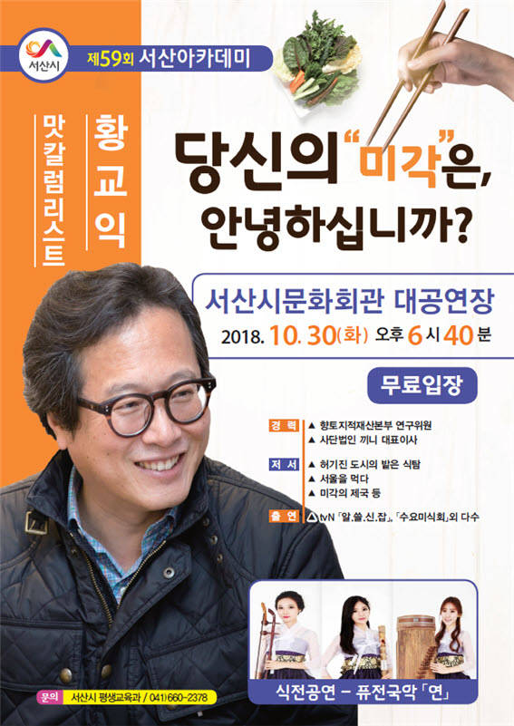 서산시, 황교익 초청 제59회 서산아카데미 개최