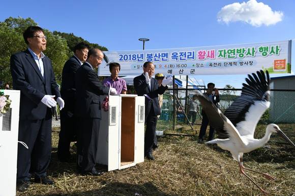 예산군, 옥전리 방사장에서 황새 자연방사 행사 가져