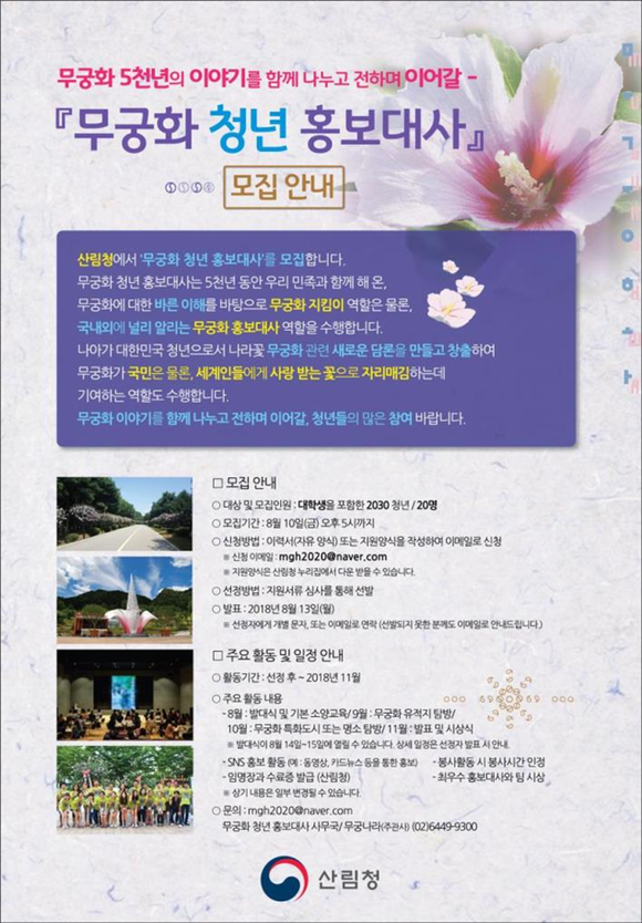 산림청 "나라꽃 무궁화를 알릴 청년 찾습니다"