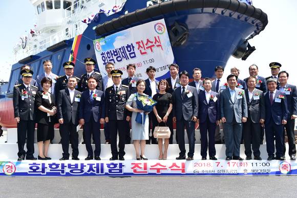 [포토] 조현배 해양경찰청장, 화학방제정 진수식 주관