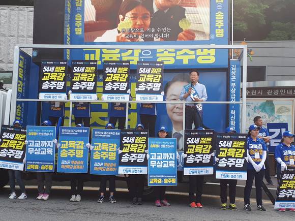 송주명 경기도교육감 후보 수원서 마지막 유세