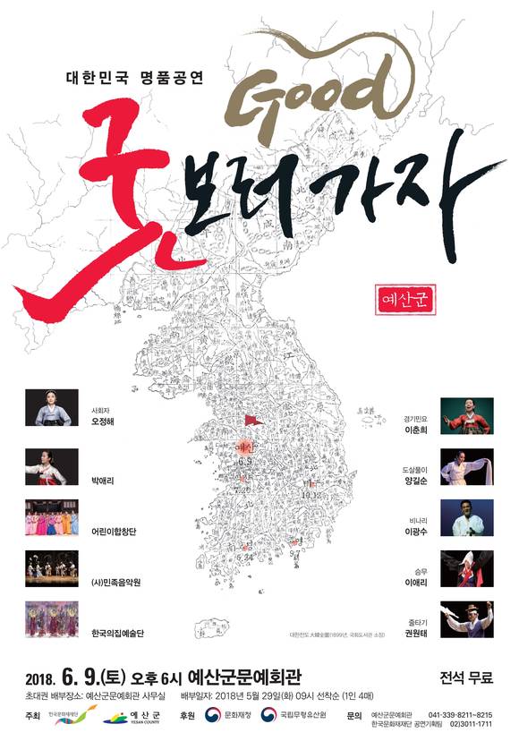 예산군, 대한민국 최고 명인 명창의 명품공연 '2018 굿GOOD 보러가자'… 6월9일 개최