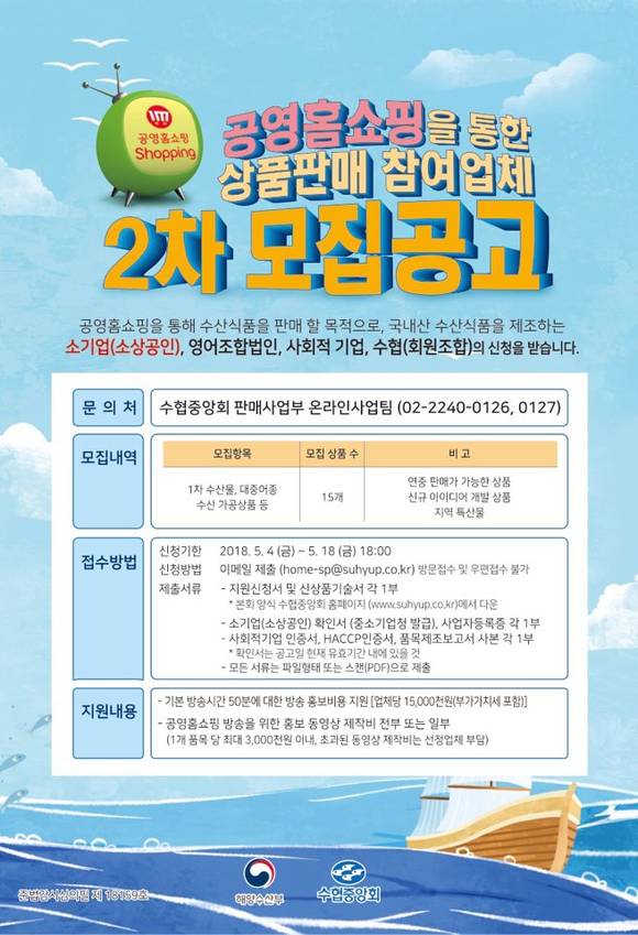 수협중앙회, 공영홈쇼핑 입점 지원업체 2차 공모