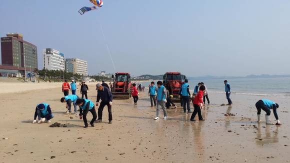 보령시, 조개구이축제 성공 기원…대천해수욕장 백사장 자갈 제거