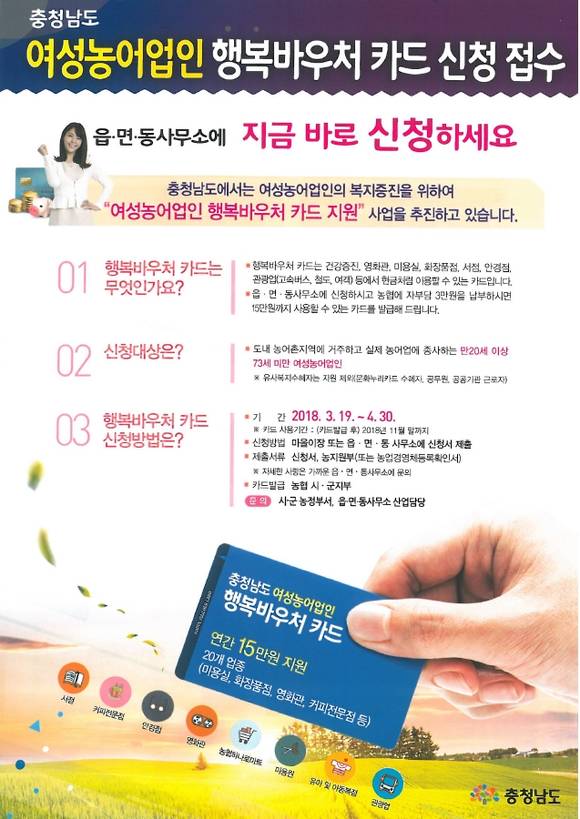 보령시, 여성농어업인 행복바우처지원사업 시행