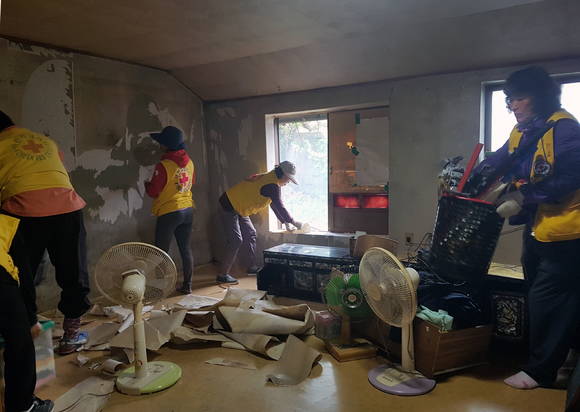 홍산면 적십자봉사회, 어려운 가정 도배 봉사