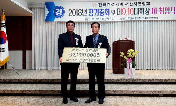 서산시 건설기계 연합회, 불우이웃 성금 ‘쾌척’