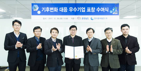 한국중부발전, 2017 기후변화 우수 충청남도 표창 수상