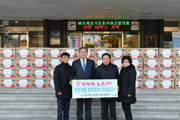 바르게살기운동 부여군협의회, 연말 이웃돕기 라면 기탁