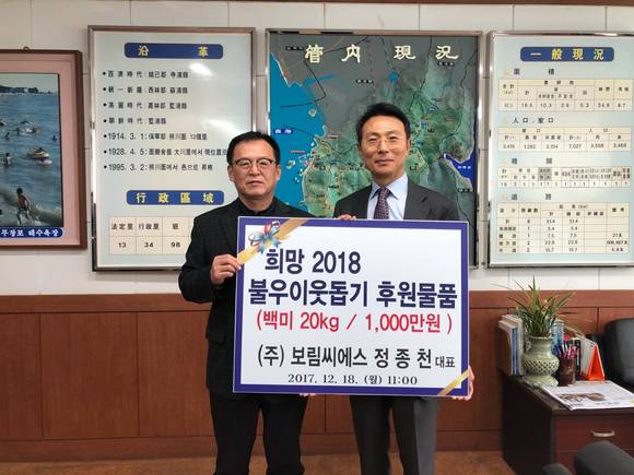 보림CS 정종천 회장, 이웃돕기 성금 1000만원 기탁